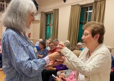 Frances awarded prize by Sandra for gaining most monthly competition points for the year – 7 September 2025